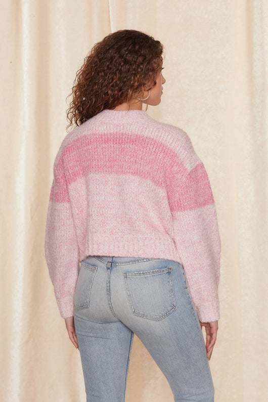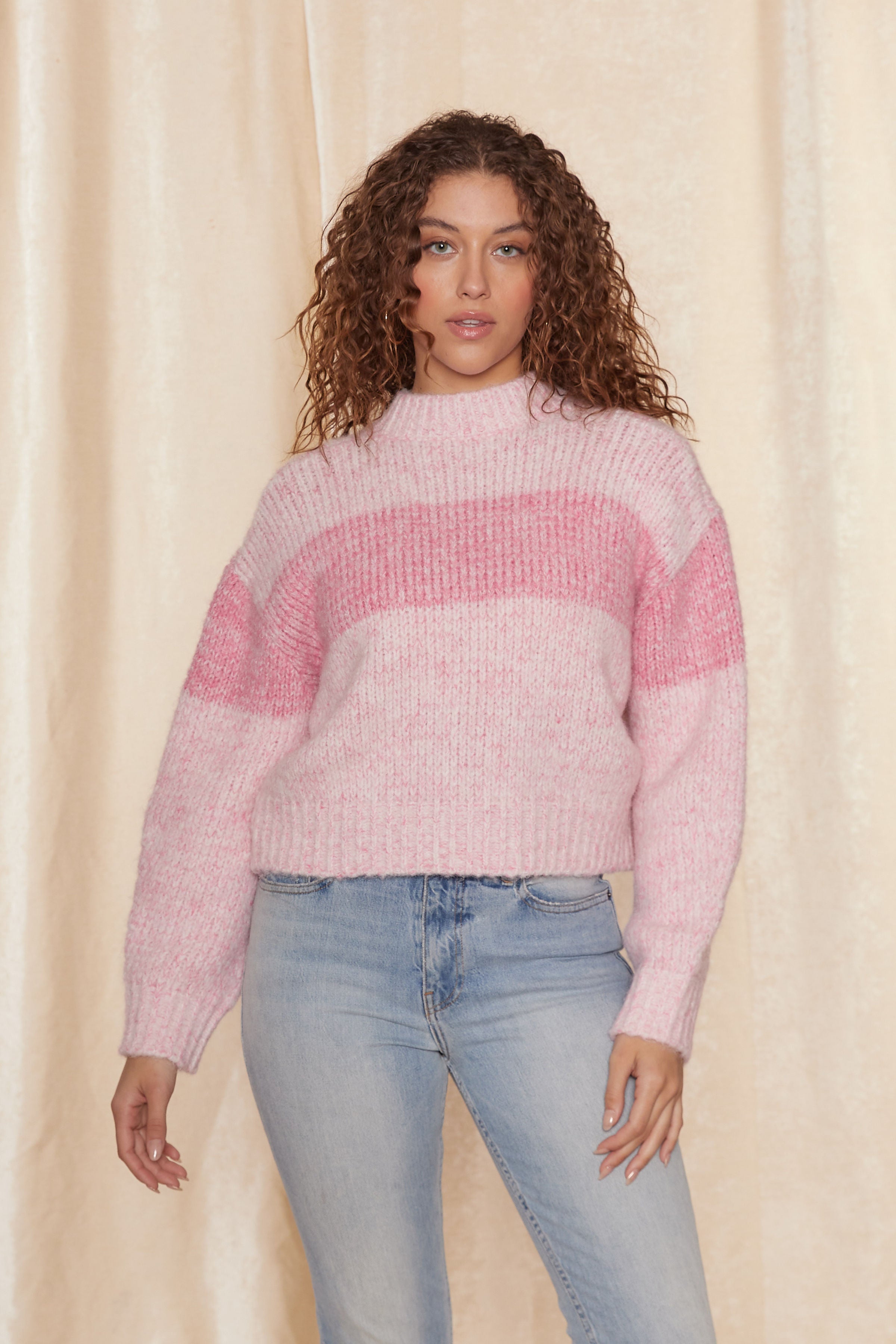 A color blocking sweet pink dream, this mock neck sweater will brighten your cold days.