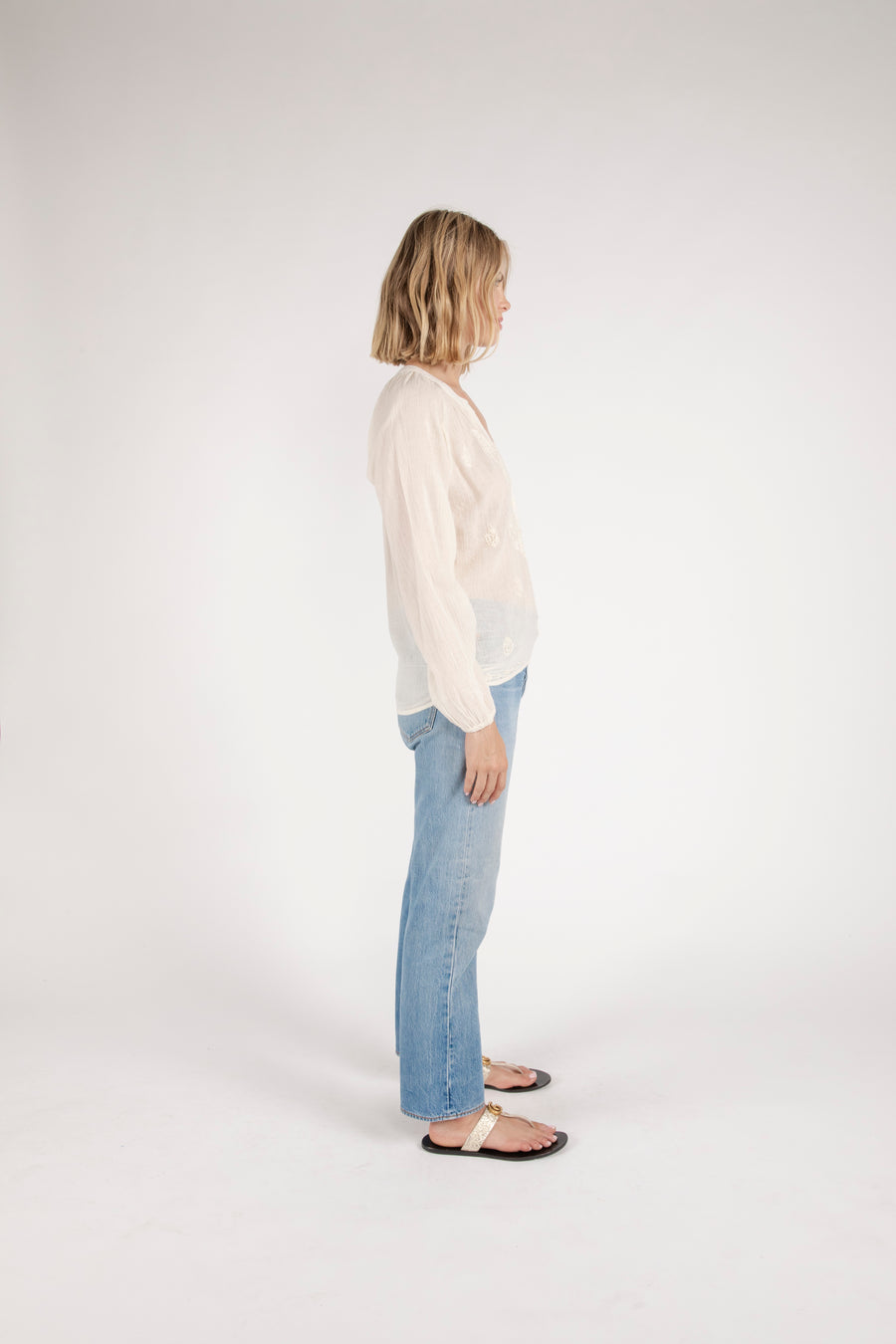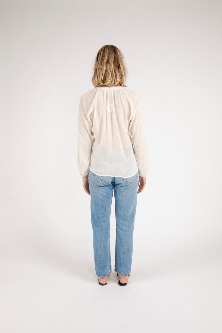 Bahar Embroidered Half Button Down