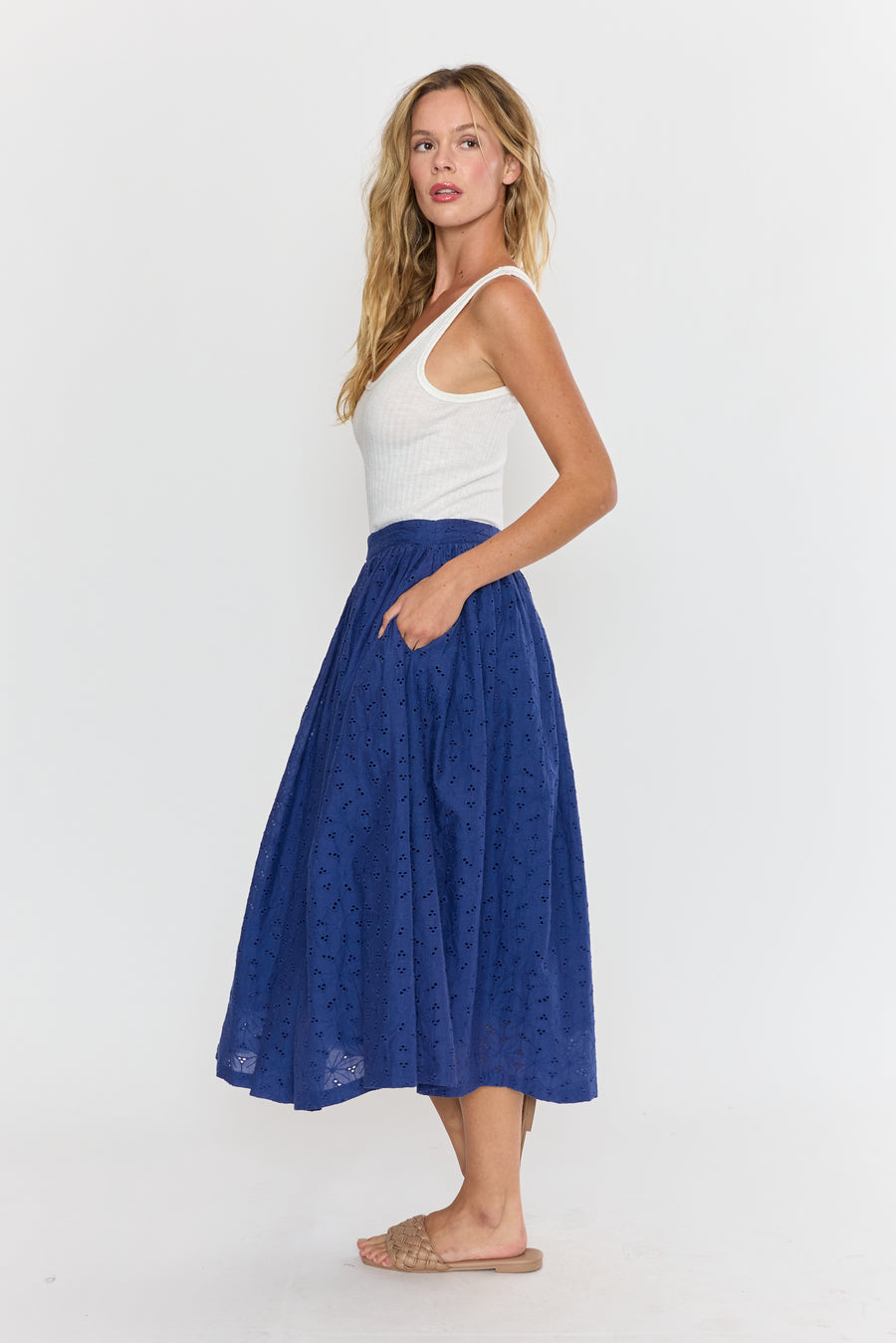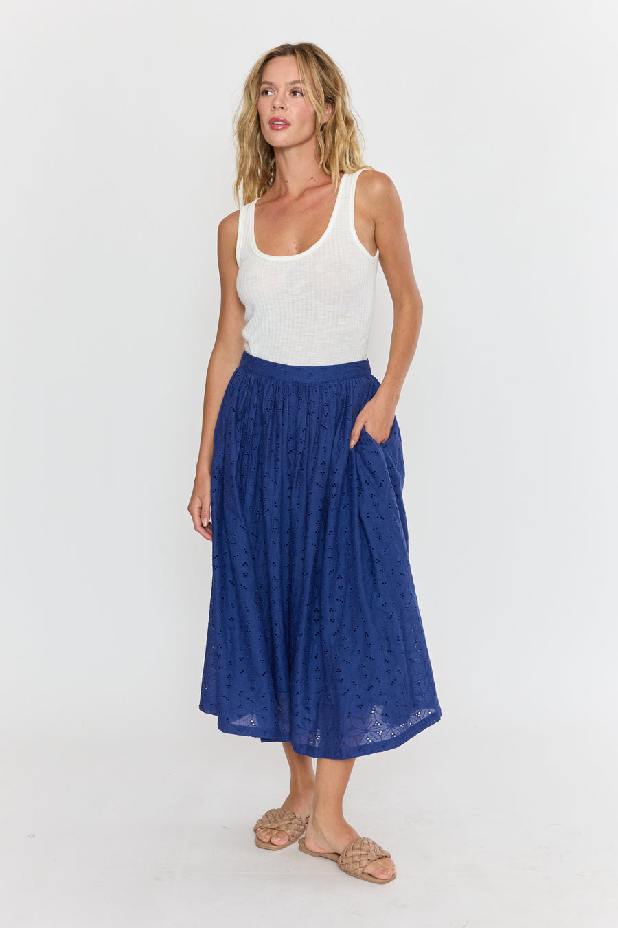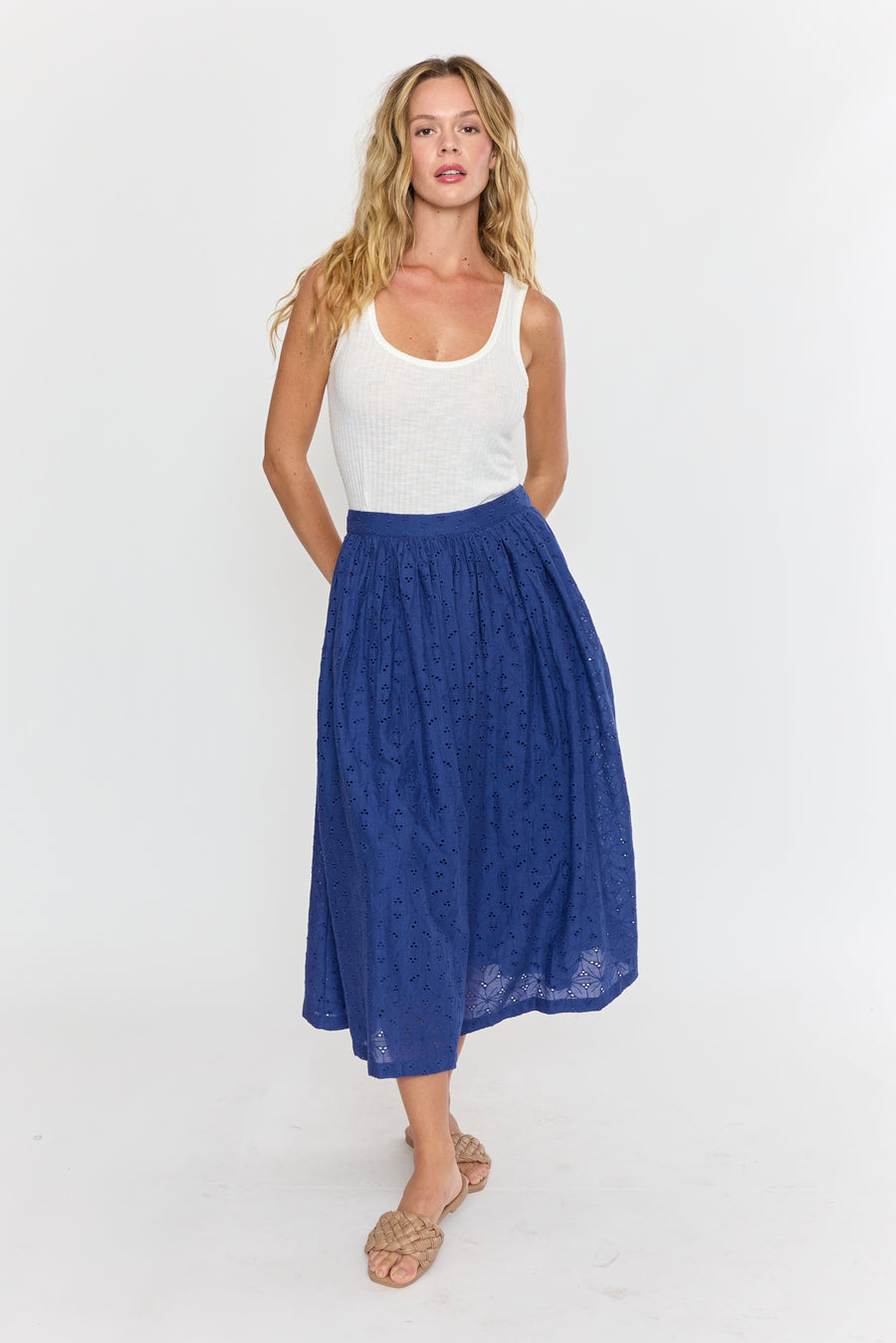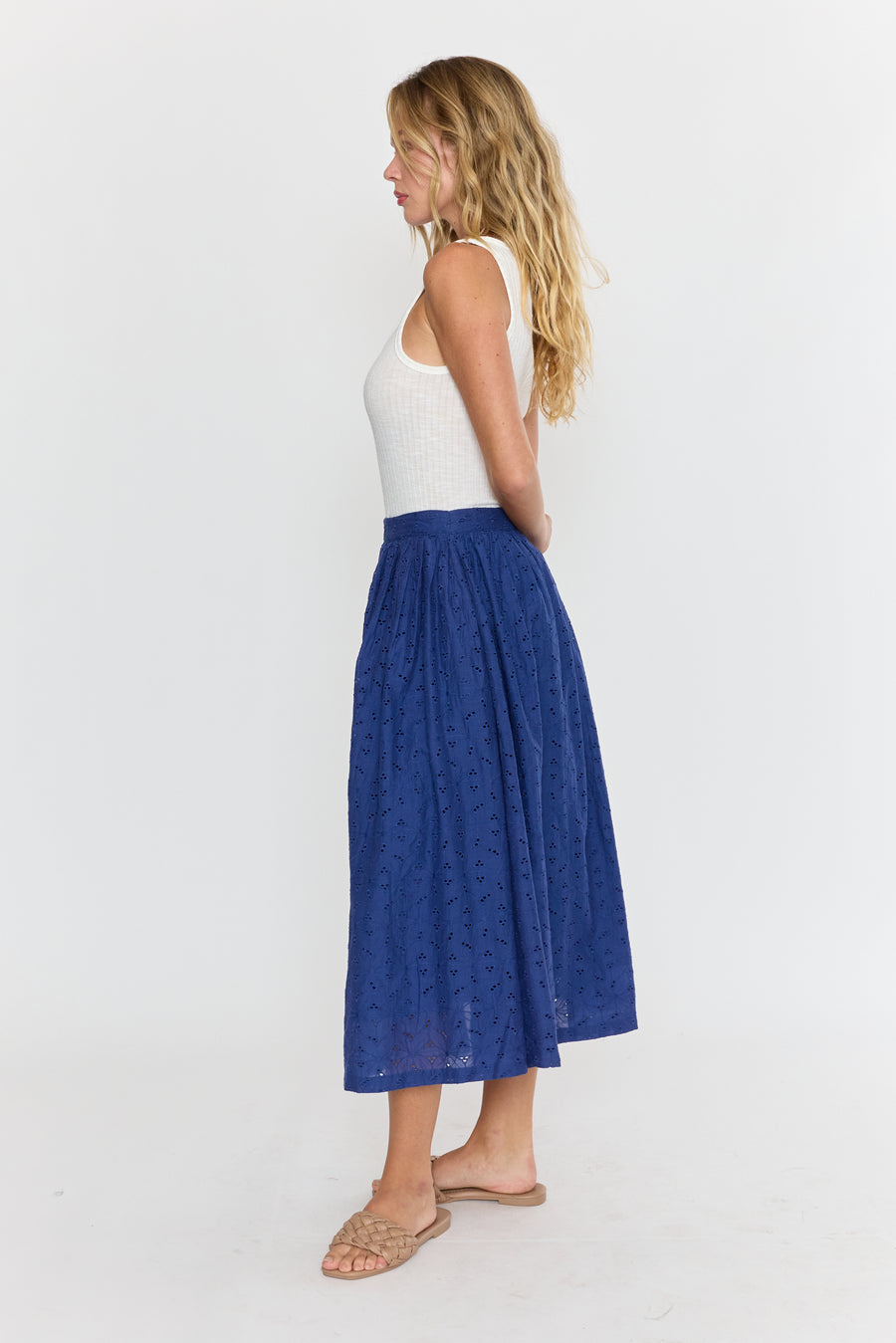 The Venna Midi Skirt brings summer vibes to life with its charming eyelet fabric in a stunning blue hue. Light and breezy, it’s perfect for sunny days and playful adventures, adding a fresh pop of color to your wardrobe. Embrace effortless style and comfort all season long!
