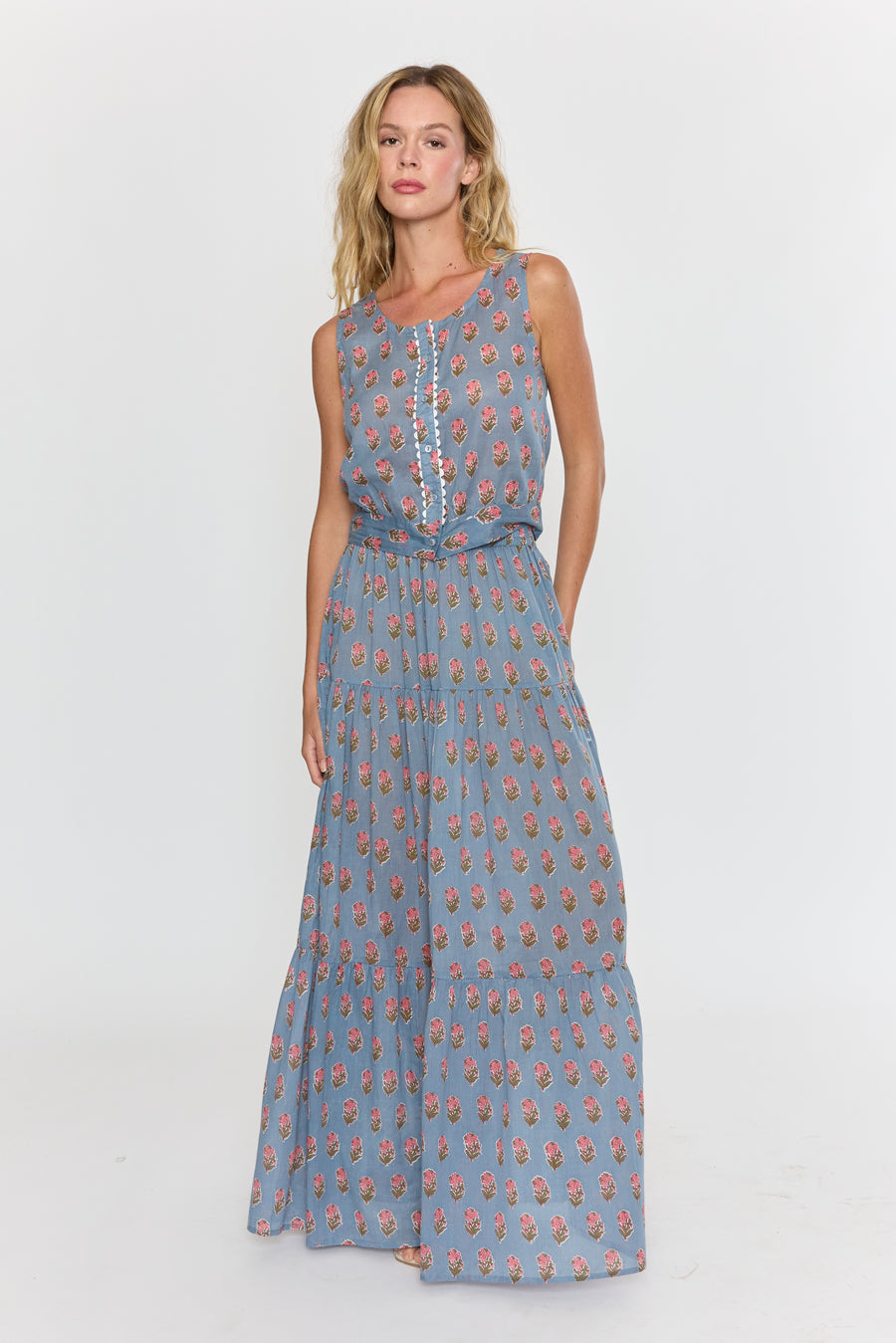 Experience breezy comfort with the Geetha Button Down Tank Top, crafted from super soft cotton voile. Its lightweight fabric and charming block print make it perfect for sunny days and playful adventures. Stay cool and stylish wherever you go!